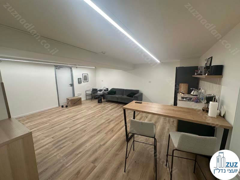 מרתף בקומה מינוס 1 שמחולק לאופן ספייס גדול פלוס חדר מאמנים עם מטבחון.